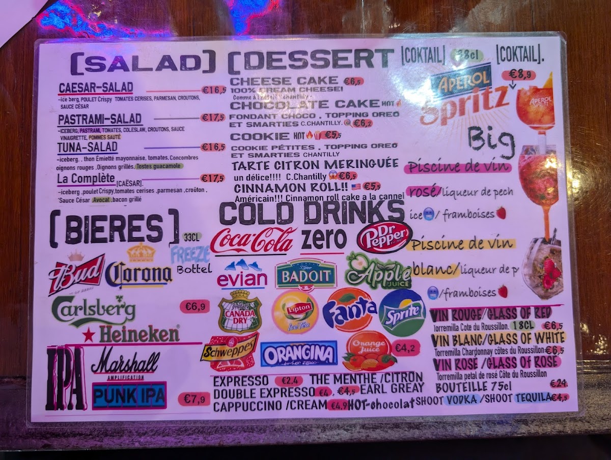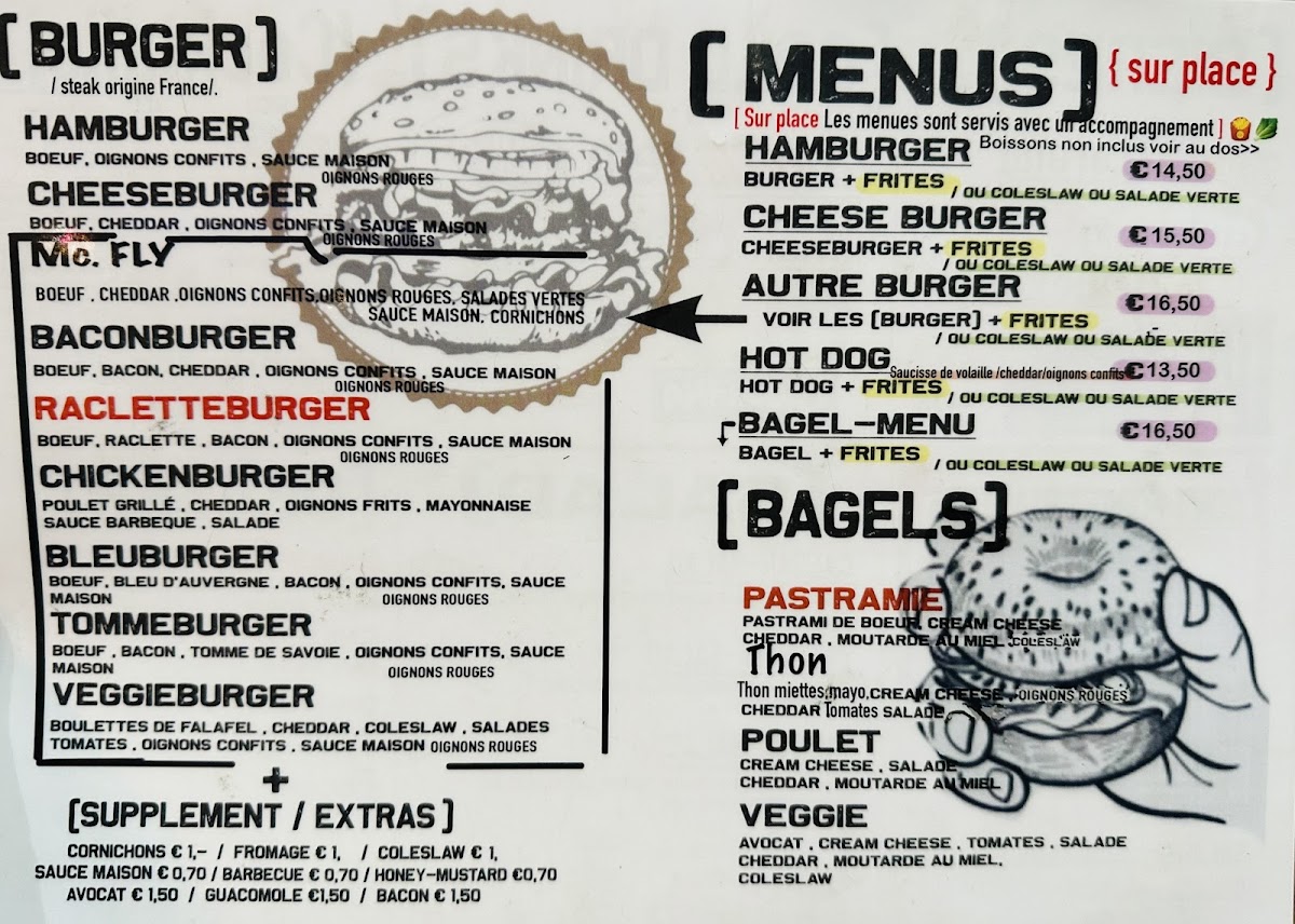 The menu at Koff Burger Montmartre offers a variety of American-style dishes focusing primarily on burgers, bagels, and hot dogs. Visitors can expect a selection that includes classic and specialty burgers, complemented by traditional sides such as French fries and hash potatoes. Additionally, the menu features vegetarian options like the Vegetarischer Bagel and a range of salads.